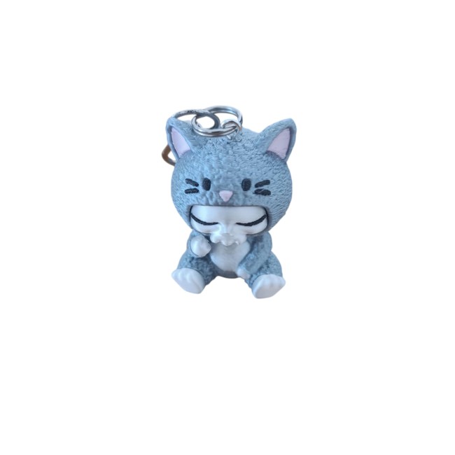Craquez pour ce porte-clés tout en douceur représentant un petit personnage endormi dans un costume de chaton gris. Entièrement imprimé en 3D avec du filament PLA, il séduit par ses détails directement issus de la modélisation, sans peinture ajoutée.