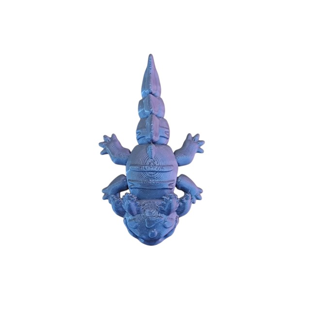 Réalisé en PLA multicolore, il affiche une nuance de violet et de bleu, directement issus du filament, sans peinture ni retouches.