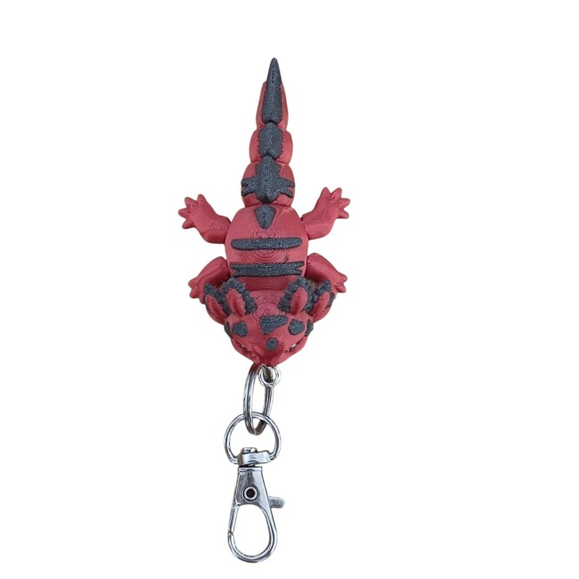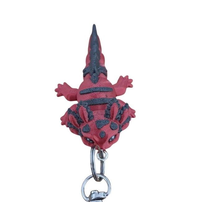 Emportez partout avec vous cet adorable axolotl articulé aux couleurs intenses rouge et noir.