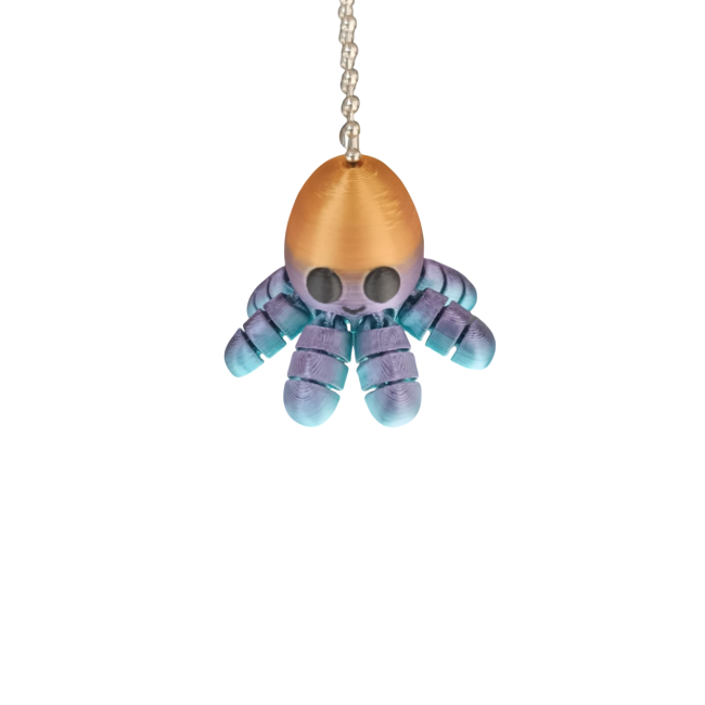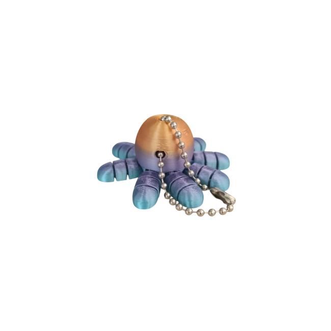 Craquez pour ce porte-clés pieuvre articulée au design coloré et original ! Imprimée en 3D avec soin, cette adorable pieuvre arbore une tête dorée scintillante, un corps violet et des tentacules bleutés qui bougent librement.