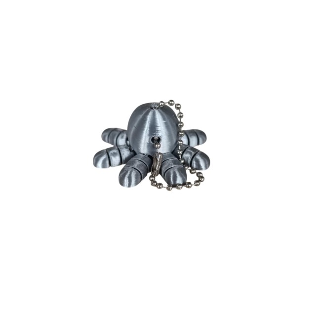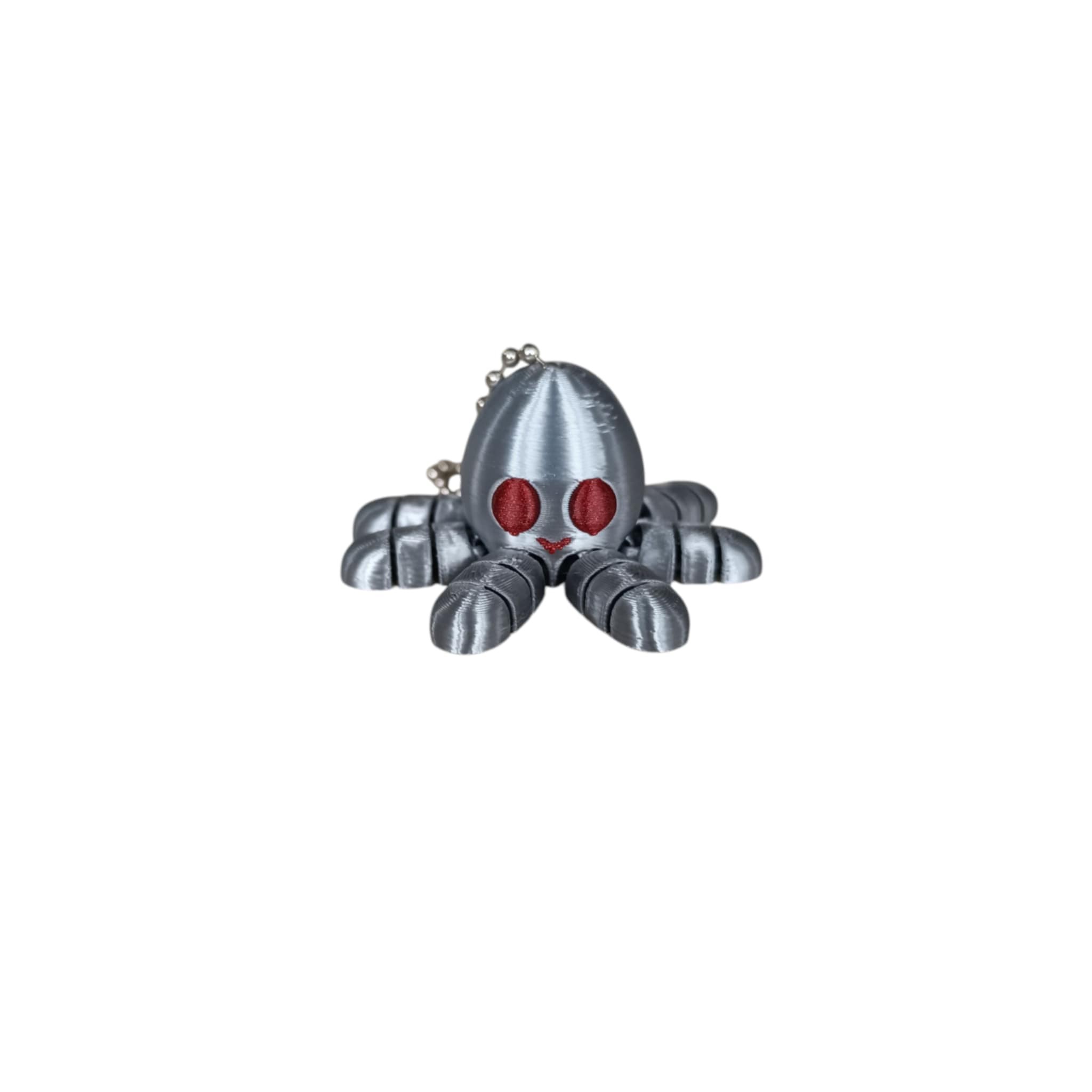 Un look unique qui mélange futurisme et malice : ce petit poulpe articulé en argent métallisé avec ses yeux rouges flamboyants ne passera pas inaperçu !